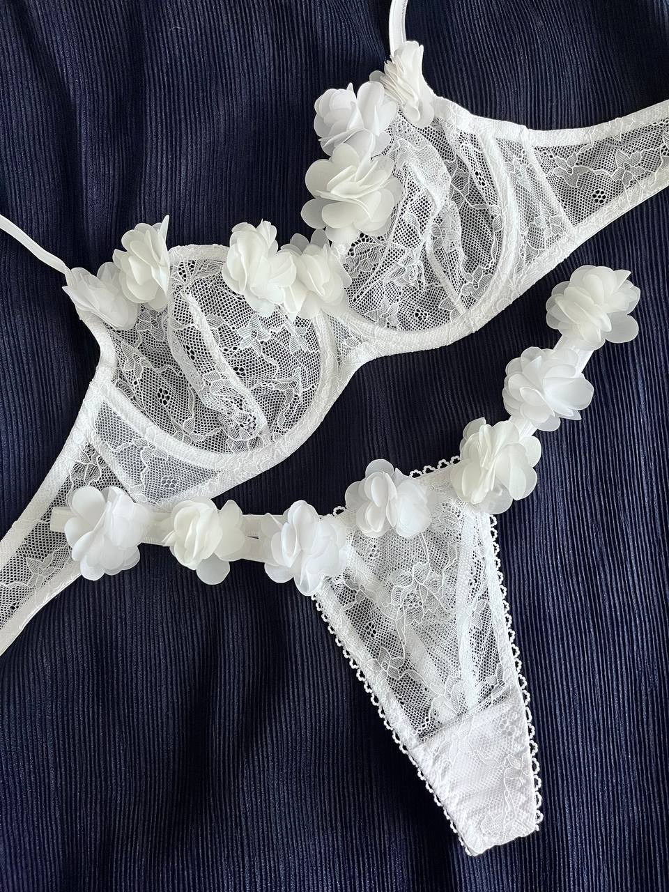 ست شورت و سوتین تور گاز اروپایی شکوفه ای برند zhalia